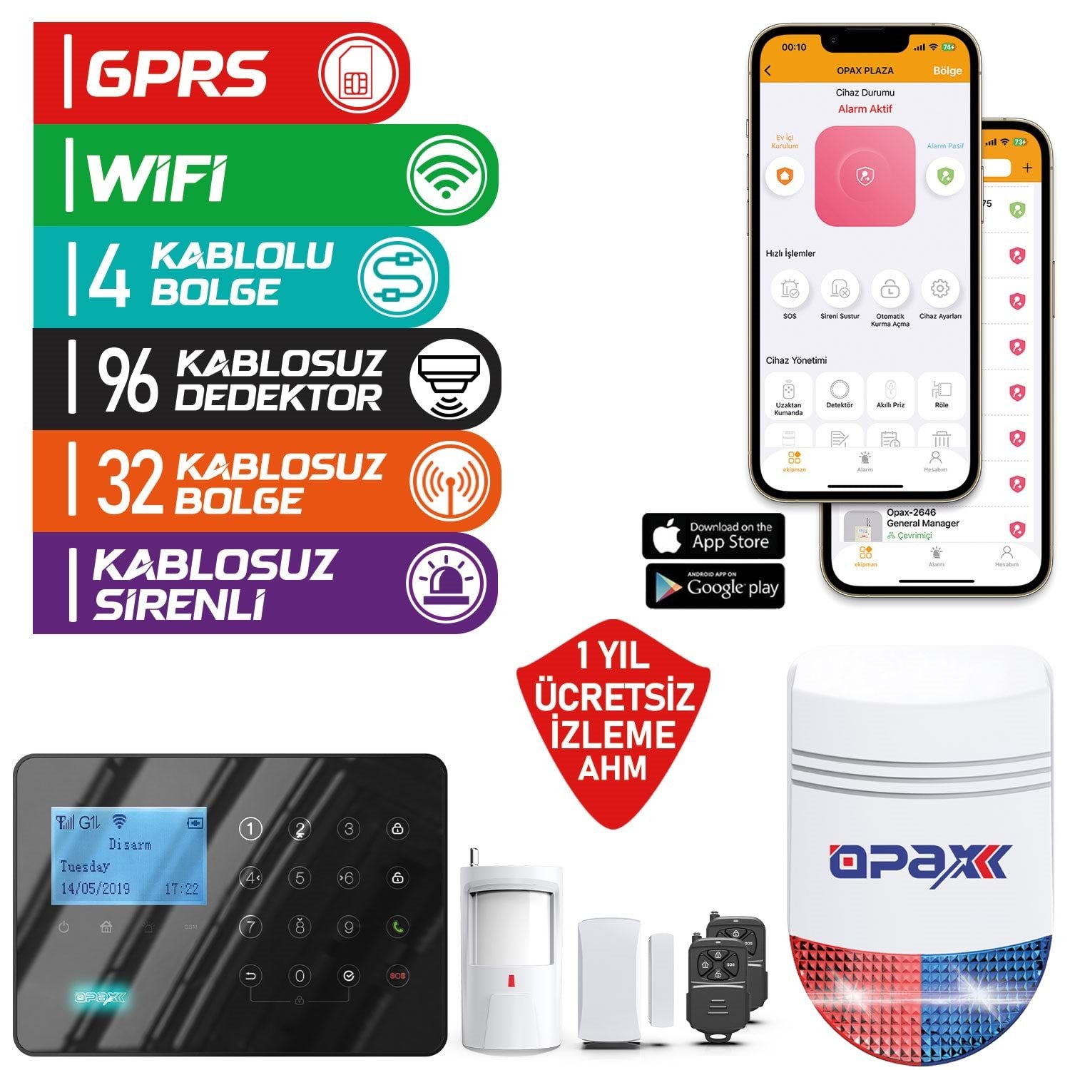 OPAX-W20-SİYAH+BGR-09 GPRS I WİFİ & BGR-09 KABLOSUZ SİRENLİ ALARM SİSTEMİ (1 YIL AHM ÜCRETSİZ)